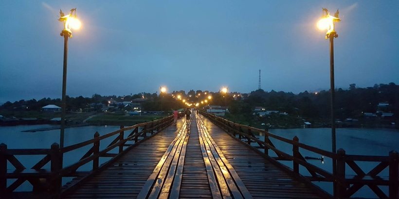 สะพานมอญ ถือเป็นสะพานสำคัญในอำเภอสังขละบุรี เปรียบเสมือนสะพานแห่งวัฒนธรรมที่เหมือนสายใยเชื่อมสองเชื้อชาติระหว่างไทย-มอญดินแดนสุดขอบประเทศเข้าไว้ด้วยกัน สะพานมอญมีชื่ออย่างเป็นทางการว่า สะพานอุตตมานุสรณ์ ทอดตัวยาวอยู่เหนือแม่น้ำซองกาเลียไปจนถึงหมู่บ้านมอญ จึงถือเป็นสะพานไม้ที่ยาวที่สุดในประเทศไทย หากคุณมากาญจนบุรีแล้วก็อย่าลืมมาเดินข้ามสะพานมอญ พร้อมกับเรียนรู้วิถีชีวิตชุมชนชาวมอญในแถบนี้ควบคู่กันไป หรือจะตื่นเช้าสักหน่อยเพื่อสามารถใส่บาตรพระที่ออกบิณฑบาตในยามเช้าสร้างความเป็นสิริมงคลก็ไม่เลวเลย